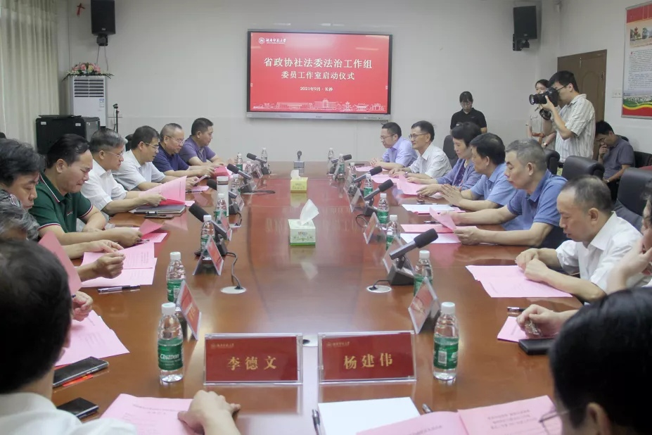 蒋洪新对省政协社法委对学校的支持表示衷心感谢,并简要介绍了学校及法学学科建设发展情况。他指出,省政协社法委法治工作组委员工作室在我校创立,是一次“社会+学校”共同体发展的良好举措,必将为学校法学等相关学科发展提供强大助力。他表示,学校将继续加强与省政协社法委的合作,全力为委员工作室建设服好务,努力为湖南省法治建设提供人才支撑和智力支持。