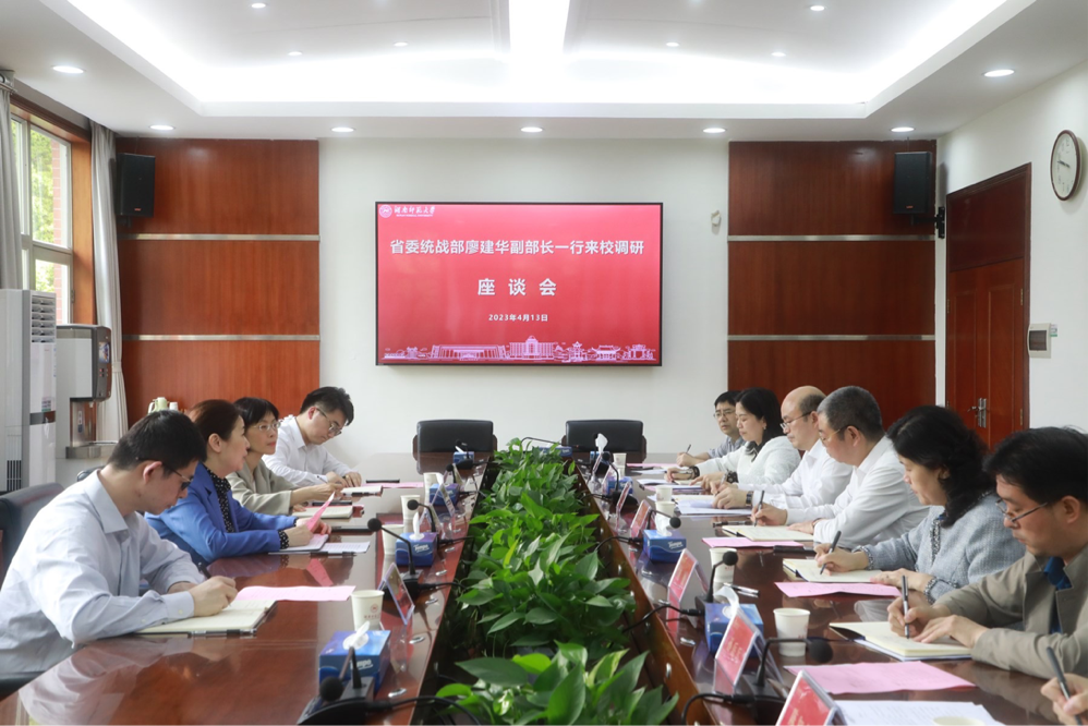 (记者 李睿 陈靓)4月13日下午,省委统战部廖建华副部长一行来我校调研。校党委副书记周俊武出席调研座谈会。